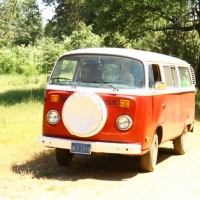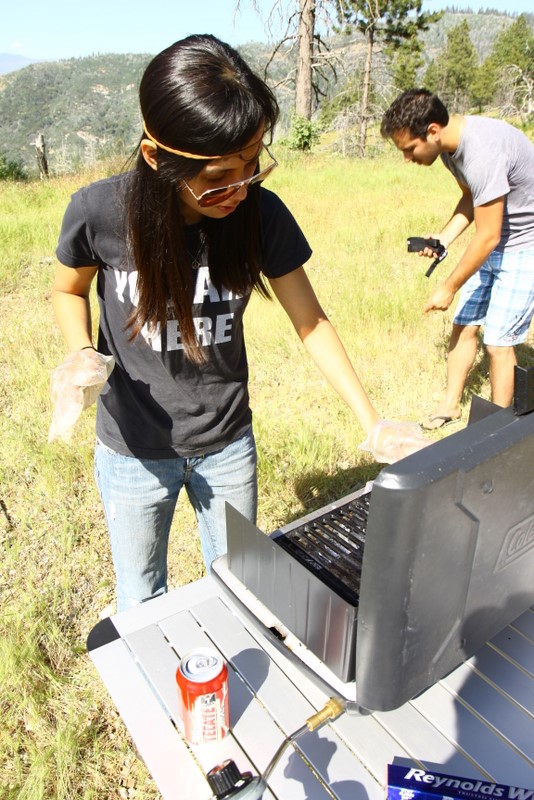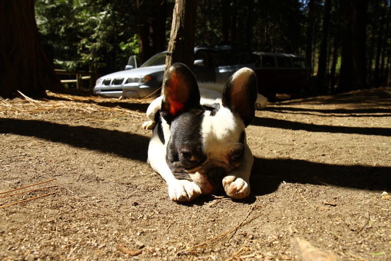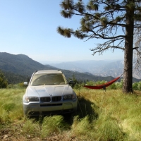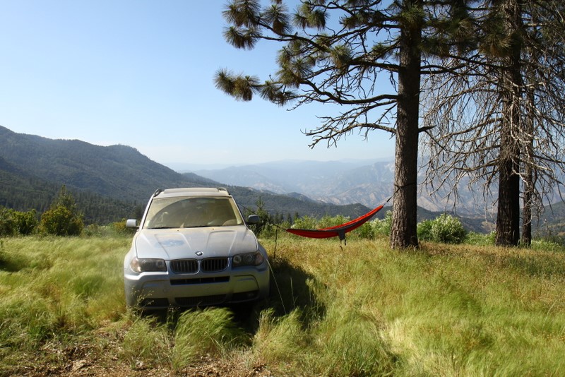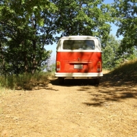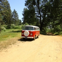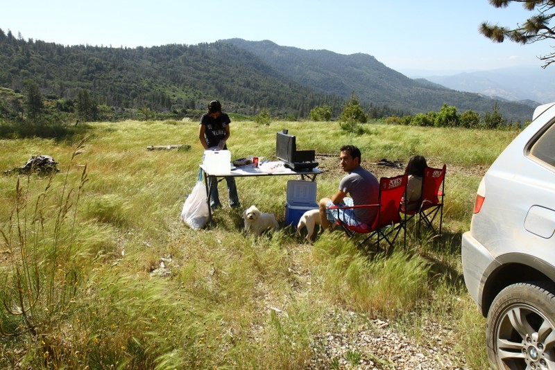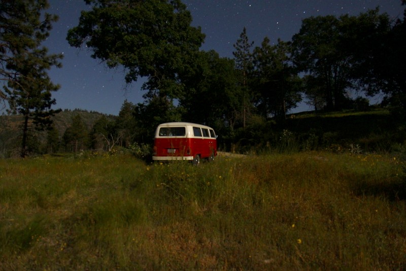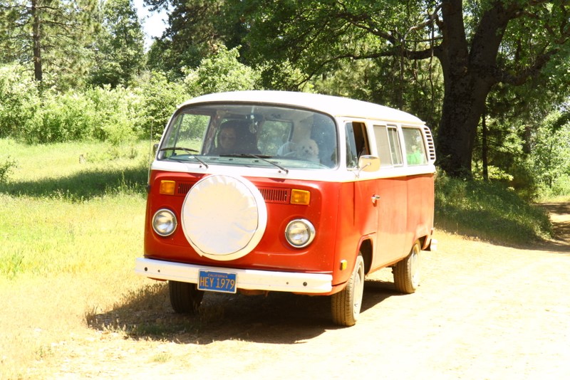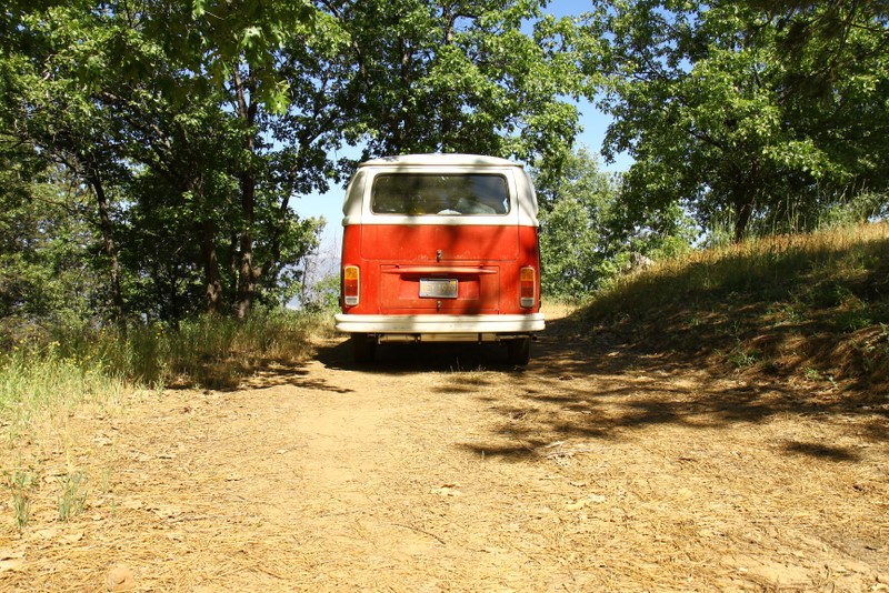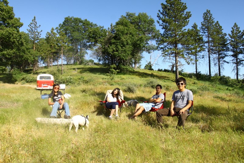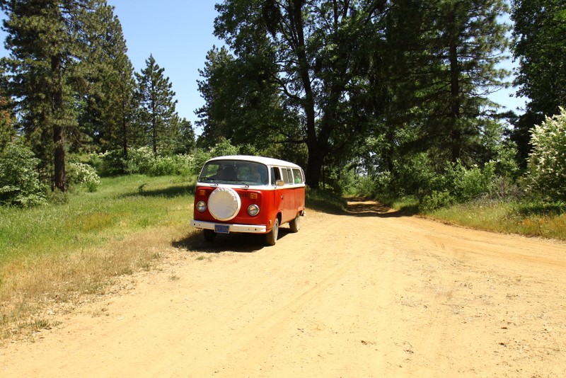 Saturday was spent “exploring” the back roads, which consists of lots of dirt, the occasional washout and a few deep ruts. At some point, I was even second guessing how the hell Basso convinced me to take a 30 year old VW into the forest trails. Yet Vanessa performed admirably, the engine kept its cool and she meandered gracefully across deep ruts and danced on the gravel. Almost as if she’s more comfortable in the outdoors than she is on pavement! The main goal was to take a specific trail down to the Kings Canyon River, but we were faced with a giant muddy puddle that scared me and we settled on Plan B instead, which is on a small meadow with a great view. :P
