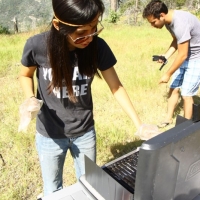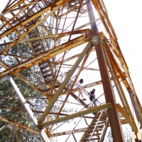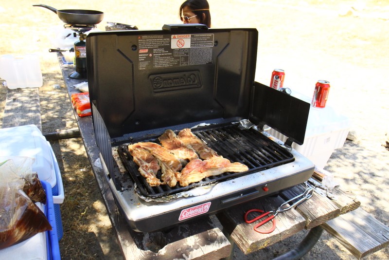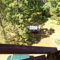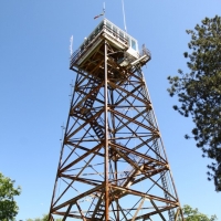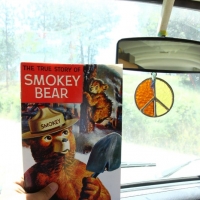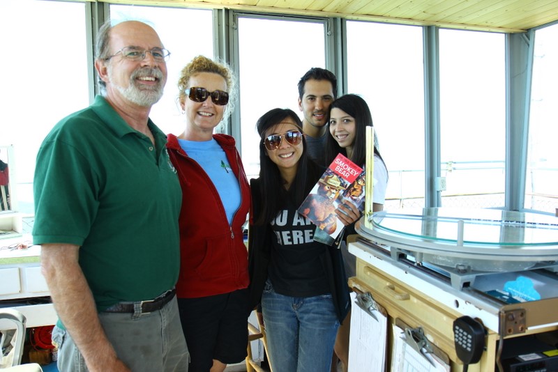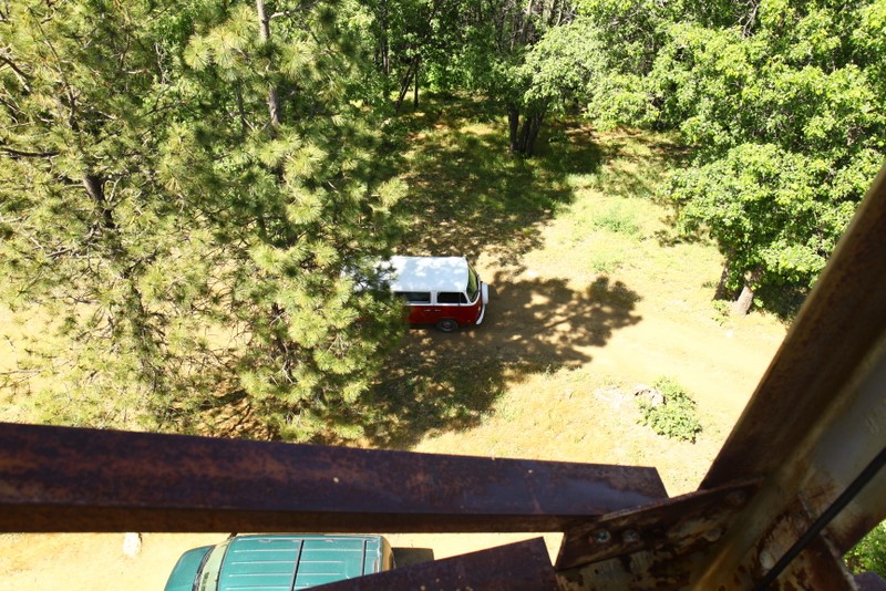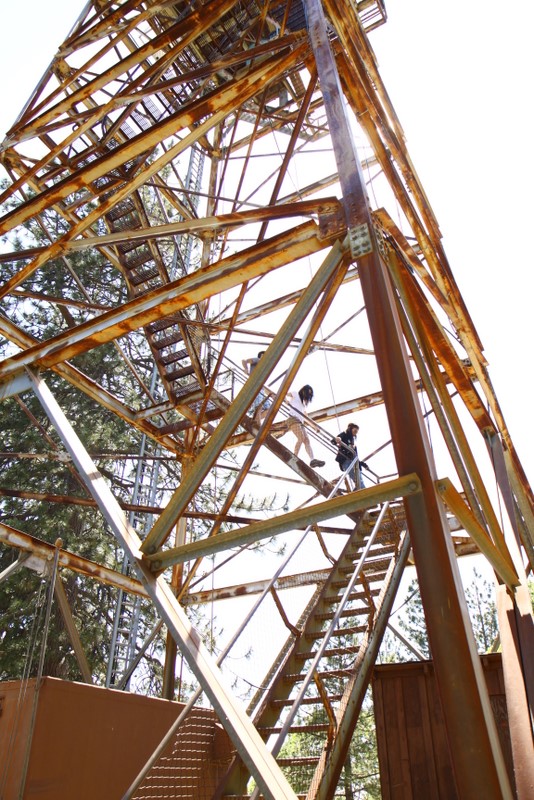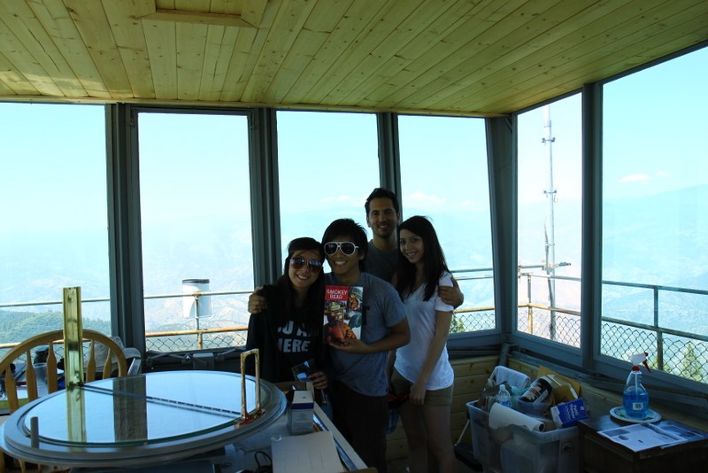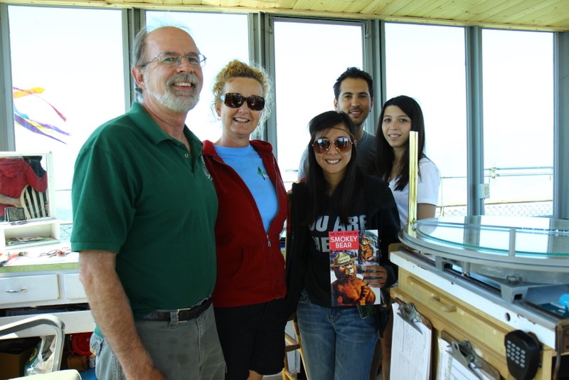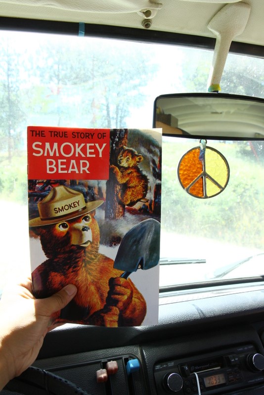 Among the highlights of the weekend was going up to “Delilah’s Lookout”, which is this fire lookout point which we chanced upon at a dead-end after getting lost on the trails. We scaled the 70 foot metal structure (and slightly soiled my pants since I’m deathly afraid of heights), met the two volunteers manning the station, and soaked in some pretty awesome 360 degree views of the entire forest. They showed us a few tools they used to track and report wildfires, and I got a kick out of this small 2′x2′ wooden platform raised by glass bottles that they need to stand on during the duration of a storm to insulate themselves from lightning. Plus, Kat scored a vintage copy of “The True Story of Smokey Bear” comic book that they gave us while he was going through the stuff for a fire permit. Very cool stuff.