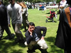 ah, his back hurts! |