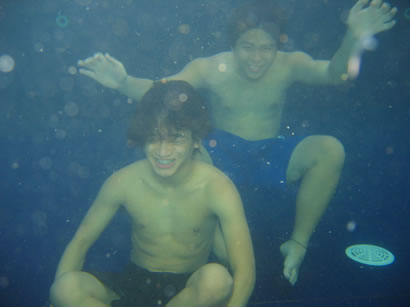 sitting down in a pool is fun, but opening your eyes underwater is not!