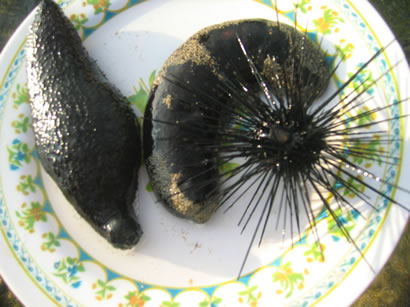 fat sea cucumbers and a water mine.. i mean, sea urchin. uni is sehr lecker!